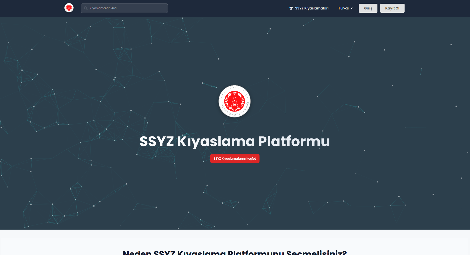 After login, users can view published benchmarks and upload their own models to participate. Users can access published benchmarks through: 1. The “SSYZ Benchmarks” button located in the top menu, 2. The “Explore SSYZ Benchmarks” button under the platform header, 3. By searching the benchmark name using the search bar.