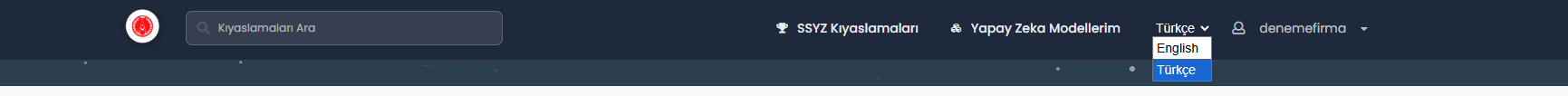 The platform supports both Turkish and English. The default language is Turkish. Users can switch languages from the selector located at the top-right corner of the platform.